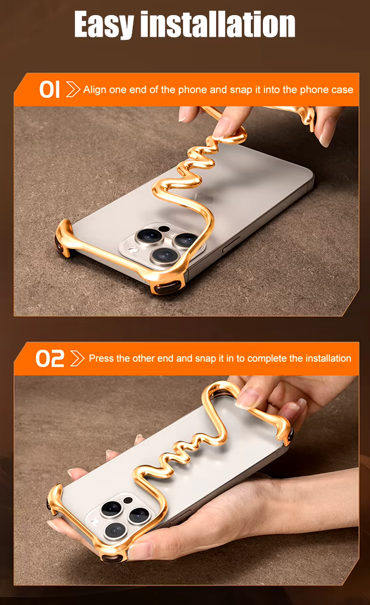 Where protection meets style without compromise, this innovative bumper wraps your iPhone in sleek metal, forming a protective frame that shields it from accidental drops and bumps, all while preserving the minimalist look. With a unique track design that ensures easy installation and a secure fit, this case gives you full access to all ports and buttons without the bulk of traditional cases. Engineered for elegance and durability, this frameless bumper is perfect for showcasing the beauty of your iPhone while keeping it safe.