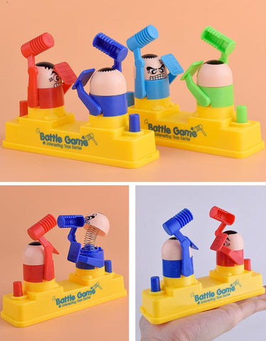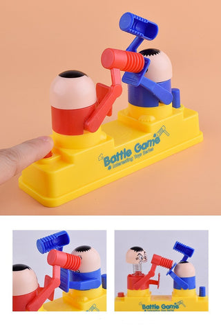 This hammer battle toy is a perfect toy for children’s hands-on ability. Easy and interesting to play, press button and use hammer to knock opponent robots heads, the opponent blocks with a shield until one of the robots are hit on the head, the head bounces, and the other side wins.