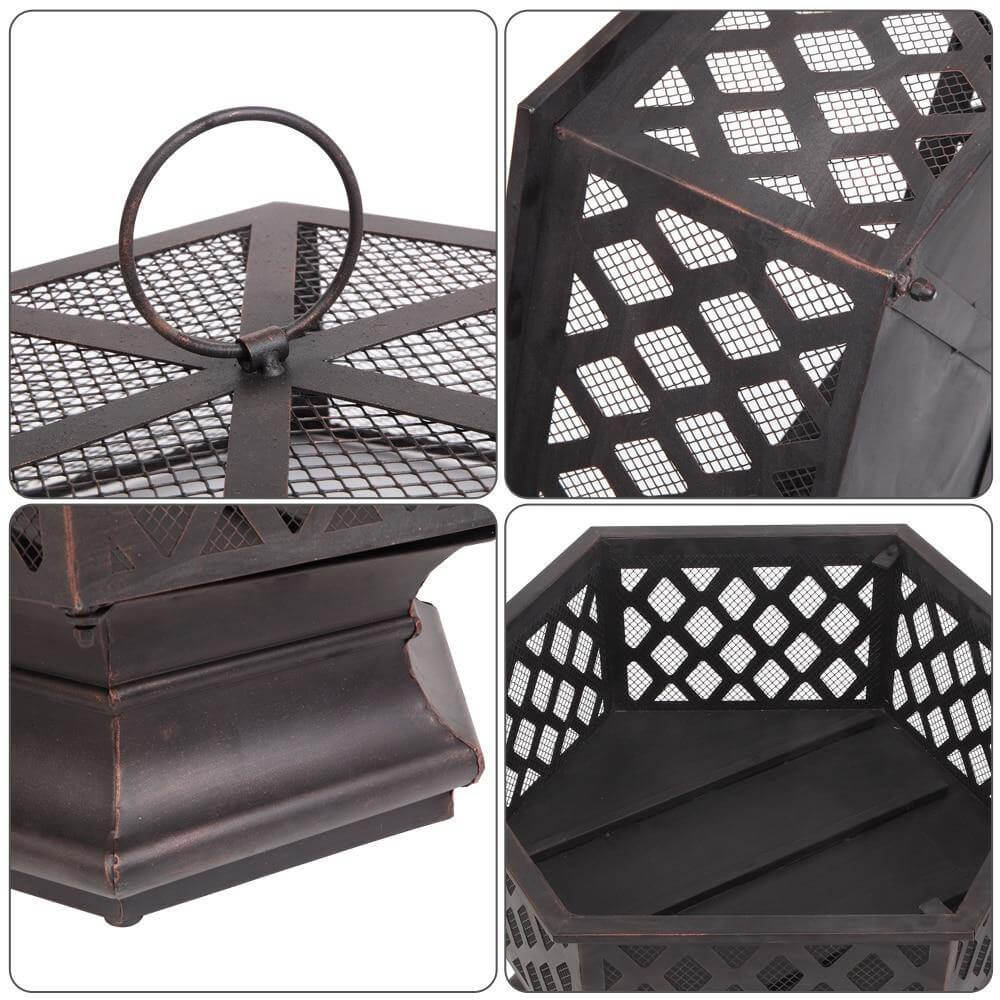 This 22″ hexagonal-shaped iron brazier is the best choice for you. Its distressed bronze shape and lattice detailing are perfect for decorating your yard. You can put it by the poolside or backyard.