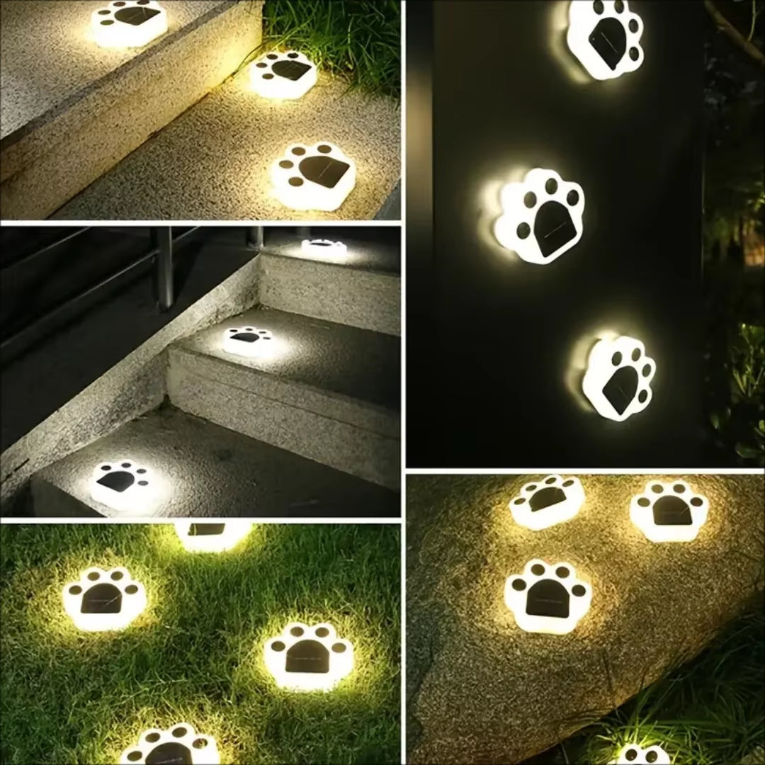 4PCs?Glowing Paw LED Solar Pathway Outdoor Lights