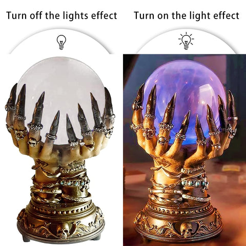 Like the cold gem-like hand, the witch’s hand can keep fate. With hands reaching out from the Gothic platform, hold this mysterious glass sphere, where the light inside changes color, convincingly showing the activity of another world.