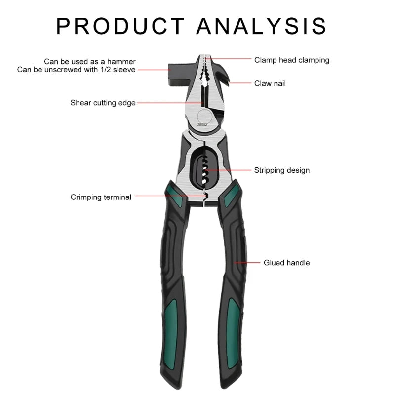 This pliers is your ultimate tool for tackling a wide range of tasks with efficiency and precision. This versatile tool combines the functionalities of pliers and a hammer into one streamlined design, making it an indispensable addition to any toolbox.?