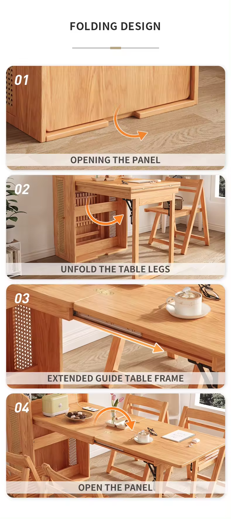 This innovative dining set features a foldable table and chairs that can be neatly tucked away into a hidden cabinet, making it the ultimate space saver for any home. Designed with functionality and style in mind, the set transforms from a compact cabinet into a full dining setup, providing a practical solution for small living spaces, apartments, or homes where flexibility is key. The sleek design ensures that when not in use, the set blends seamlessly with your existing decor, offering a clutter-free environment. Whether you’re hosting a dinner party or enjoying a quiet meal at home, this foldable dining table and chair set adapts to your needs, combining convenience with modern elegance.
