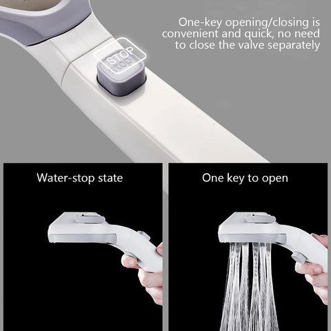 - This high-pressure showerhead is easy to use, and you can stop the water by pressing the button, saving strength for you.