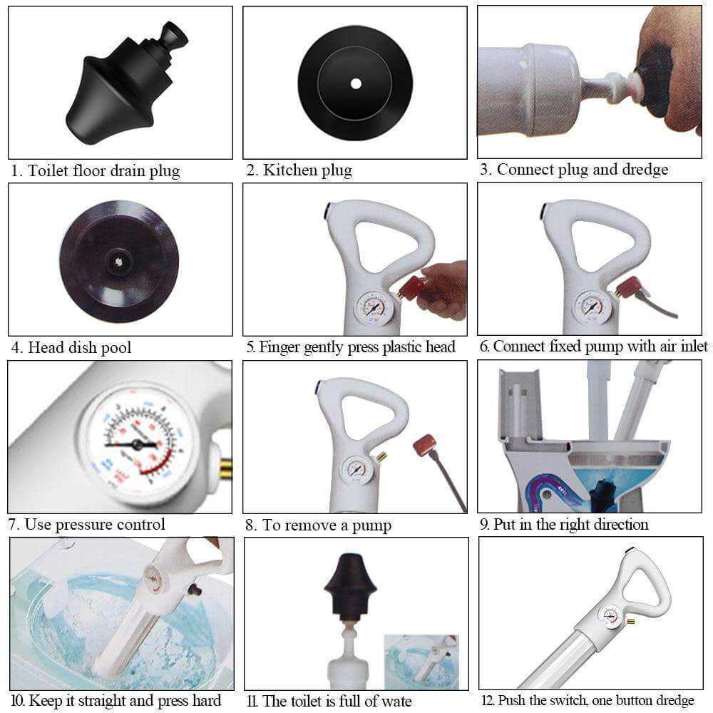 Looking for an easy and effective way to clear your clogged toilet? Look no further than the High-Pressure Toilet Air Drain Blaster Pump! This powerful pump uses compressed air to quickly and easily clear away clogs without the need for harsh chemicals or manual labor. Attach the pump to your toilet bowl and watch the clog disappear in seconds!