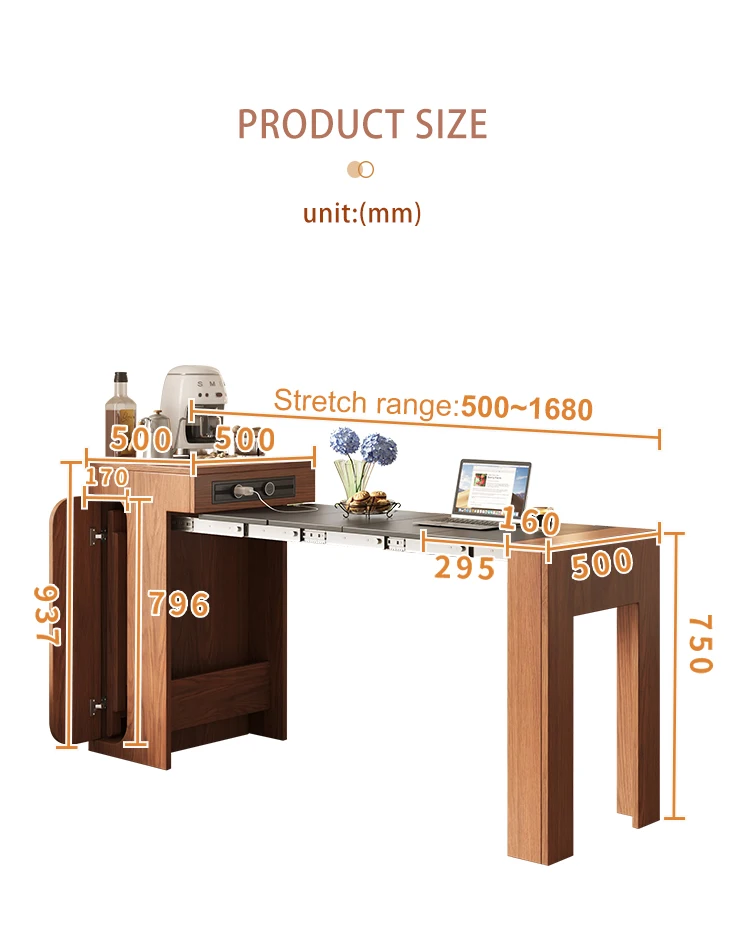 This transforming kitchen table is a space-saving marvel, designed to maximize efficiency in your home. It effortlessly transitions from a compact console to a fully functional dining table, accommodating your needs from daily meals to special gatherings. Crafted with innovation in mind, this piece of furniture is ideal for smaller living spaces or for those seeking to maintain a minimalist aesthetic without sacrificing functionality. Its sleek design not only saves space but also adds a modern touch to any kitchen, making it a practical and stylish solution for apartments, studios, or any home where space is at a premium.