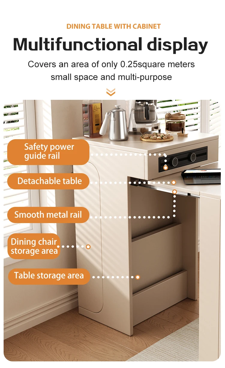 This transforming kitchen table is a space-saving marvel, designed to maximize efficiency in your home. It effortlessly transitions from a compact console to a fully functional dining table, accommodating your needs from daily meals to special gatherings. Crafted with innovation in mind, this piece of furniture is ideal for smaller living spaces or for those seeking to maintain a minimalist aesthetic without sacrificing functionality. Its sleek design not only saves space but also adds a modern touch to any kitchen, making it a practical and stylish solution for apartments, studios, or any home where space is at a premium.