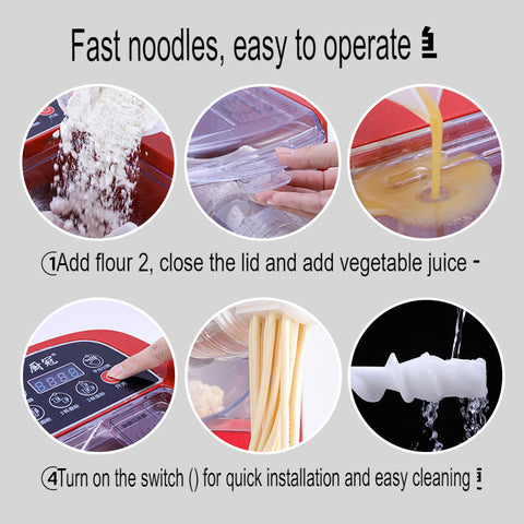 You can add egg liquid, vegetable juice (soft vegetable leaves can be put directly, hard vegetables must be juiced), etc. to make noodles with different flavors, which are healthy and delicious;