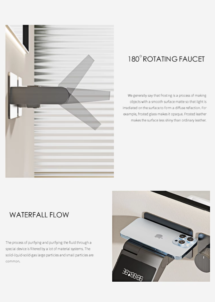 Transform your bathroom into a space of modern elegance with this intelligent faucet. Featuring an integrated LED display, it precisely indicates water temperature for safe and comfortable use. The hidden handle and sleek design blend seamlessly into contemporary spaces, adding a touch of luxury.?