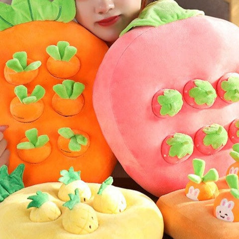 This soft, non-toxic, eco-friendly fruit toy provides hours of play. Detachable fruit slices are laser-etched for each of its four individuals with fun animal faces. Head off on a strawberry adventure with strawberries, oranges, apples, and grapes! This toy is suitable for both dogs and cats.