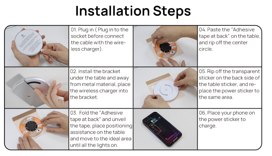 Discover the magic of seamless charging with this under-the-desk wireless charger. Designed for simplicity and discretion, this charger is hidden from view, ensuring a clean and clutter-free workspace. Easily mount it under your desk, and just place your device on top for an instant boost. It delivers reliable, fast charging without any wires in sight, transforming your workspace into a modern, efficient environment. Say goodbye to tangled cords and hello to a sleeker, more organized desk.??