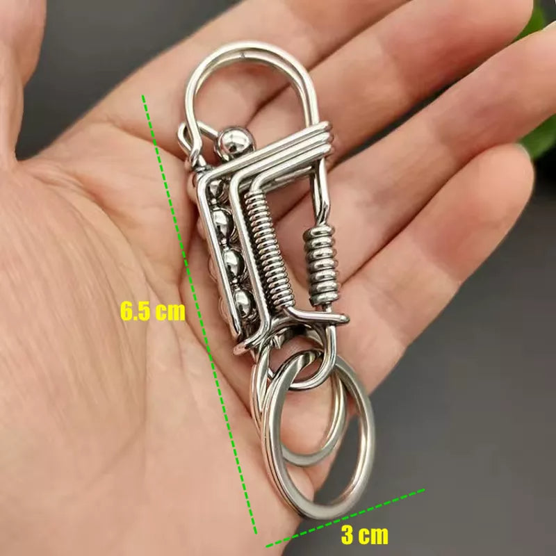 This matte-finish keychain is a sleek and durable accessory, perfect for organizing and securing your keys. Crafted from high-quality stainless steel with a sophisticated matte finish, it features an intricate iron weave design that adds both strength and style.??
