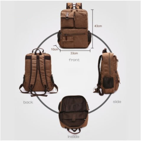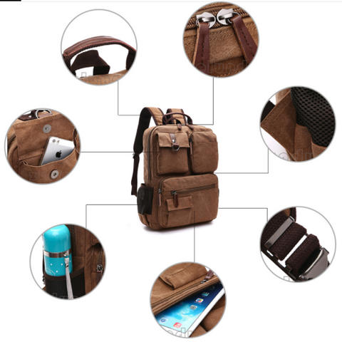 Functional outer bags: Business canvas bags have eight practical exterior pockets. Six front pockets can quickly store small items. The other two side pockets can hold water bottles or items. The backpack can be widely used as a business backpack, travel bag, and school bag.