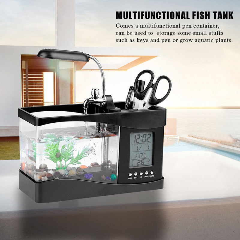 This is a multifunctional fish. With an LCD digital display, you can see the time, date, and temperature clearly. Comes with colorful LED light, great illumination for the fish. Comes with a small drawer at the bottom and a transparent pen container, so you can store some small stuff such as keys and pens.