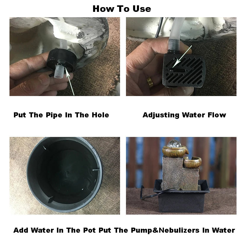 Perfect for relaxation and stress relief, this fountain is ideal for homes, offices, or meditation spaces. Easy to set up and powered by a standard 110~240V outlet, it makes for a beautiful and peaceful addition to your decor.