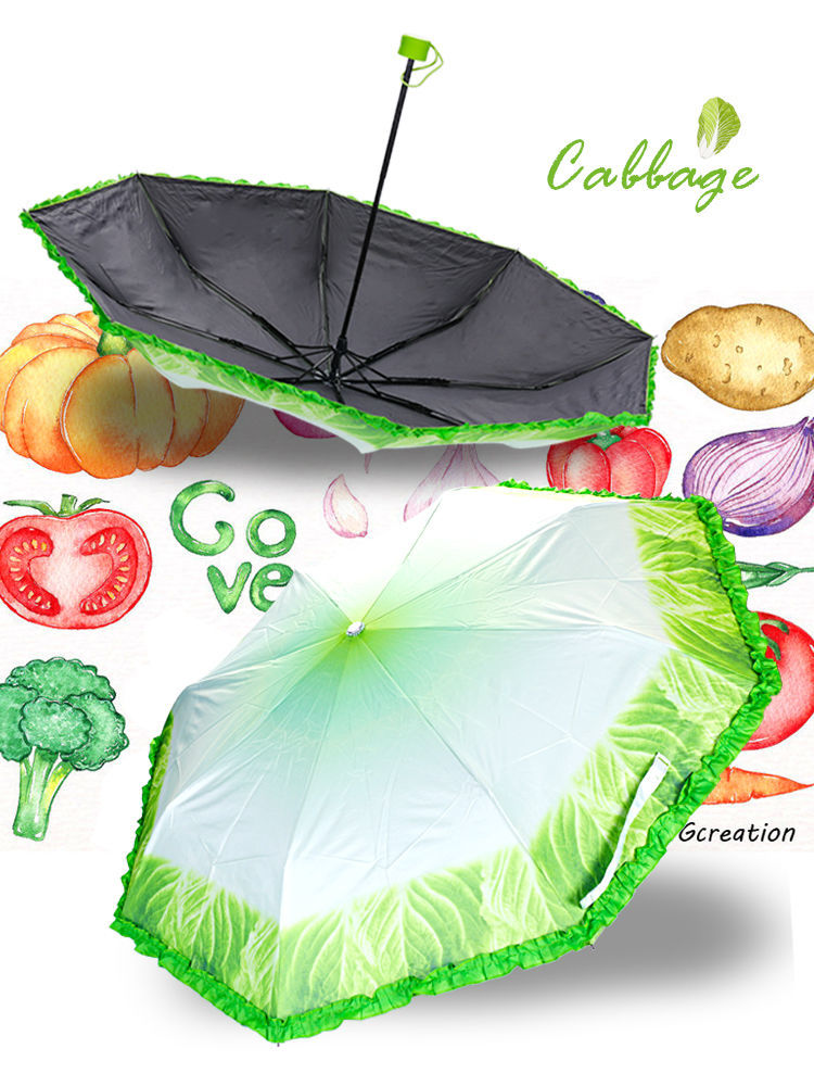 This lettuce shaped umbrella is a whimsical and functional accessory that combines unique design with practical utility. Perfect for those who appreciate a bit of humor in their daily accessories, this umbrella features a clever lettuce-inspired design, complete with green, ruffled edges that mimic the layers of a real head of lettuce.?
