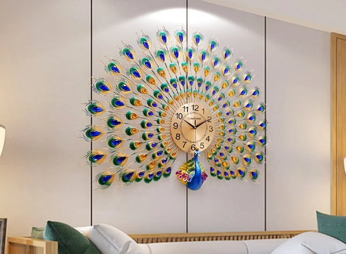 This peacock wall clock is a stunning piece of art that doubles as a functional timepiece. Its design features a beautifully detailed peacock, symbolizing grace and elegance, and adds a touch of opulence to any room. Perfect for those who appreciate artistic decor, this clock not only keeps accurate time but also serves as a striking focal point in your home.? ?
