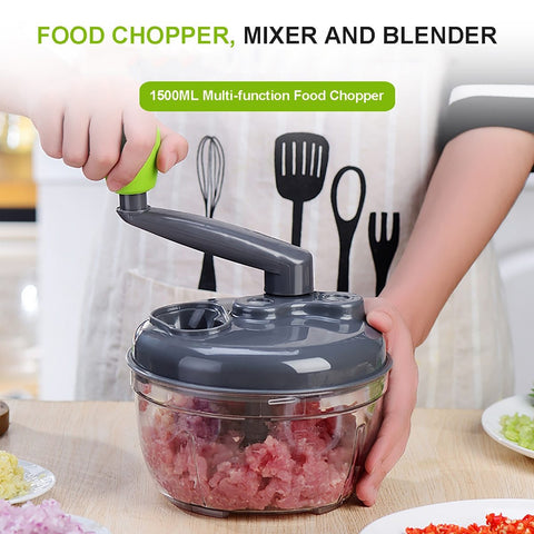 This manual hand crank food chopper contains 3 sharp blades cut all kinds of ingredients. ?- Blending vanes mix eggs, the separator can separate egg white and egg yellow completely.?