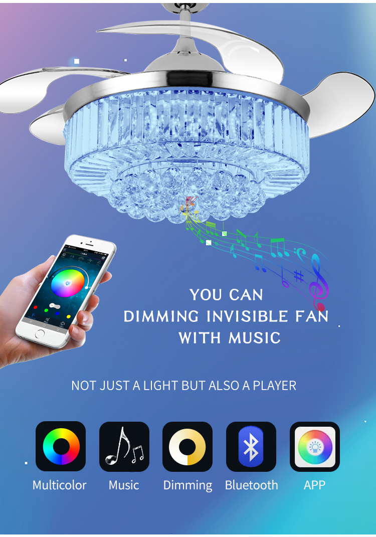 1x?Melody Glow Crystal LED Ceiling Fan Speaker Lamp