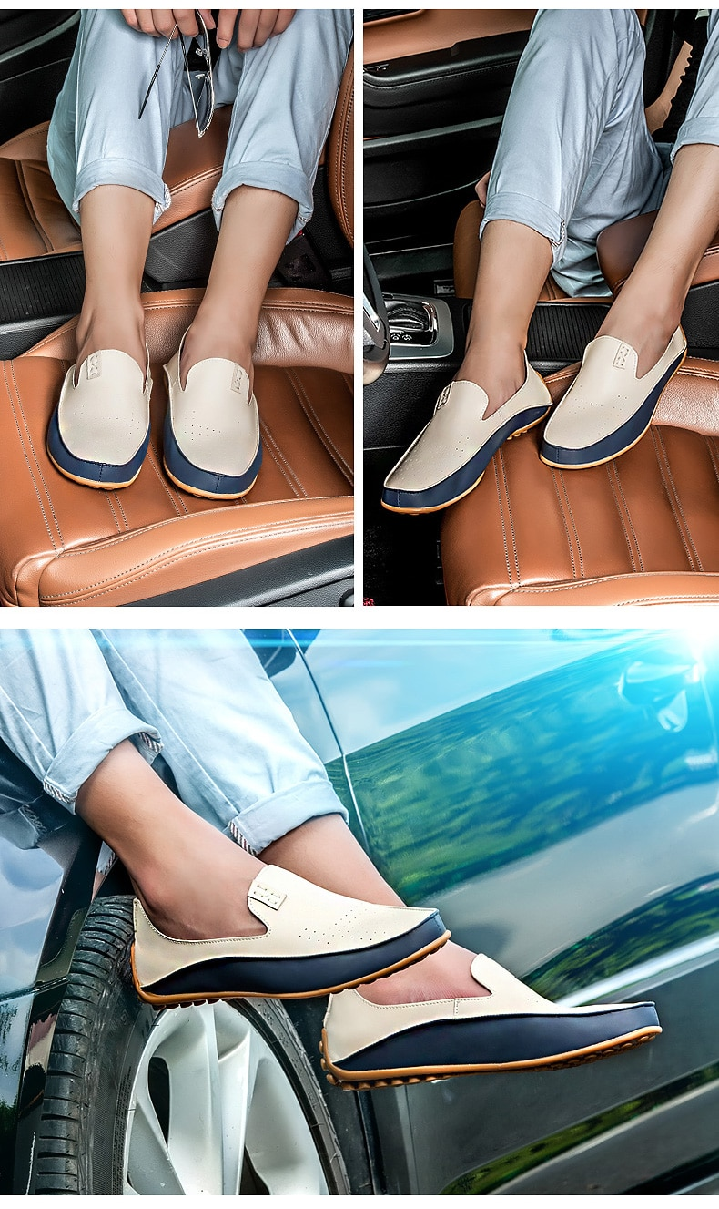 These driving shoes are the perfect footwear to wear for a day of driving around town. They have a leather upper and rubber sole, making them super comfy and durable.