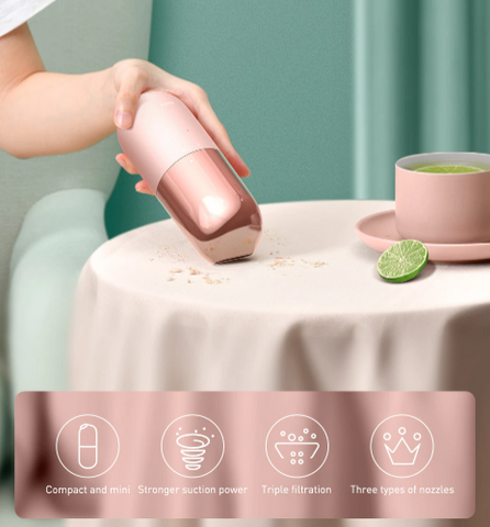 The Mini Compact Portable Vacuum Cleaner is perfect for all of your cleaning needs! With its innovative design, you can easily clean any mess with one hand. The product is lightweight and portable so that you can take it with you anywhere! Its compact size makes it perfect for travel and storage in tight spaces.