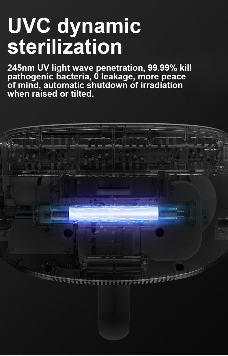 - 99.9% UV sterilization function, which can eliminate a variety of bacteria, and automatically shuts down the irradiation when the machine is raised or tilted.
