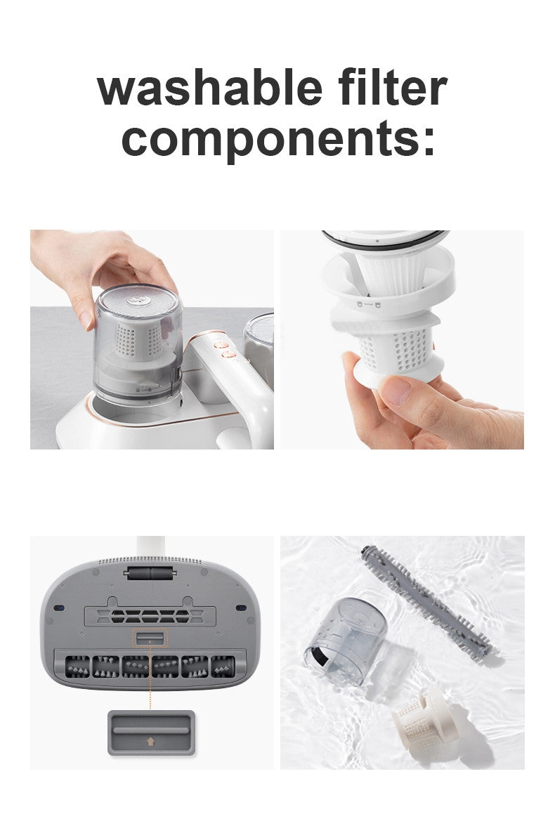 - Home wireless mites remover, built-in 2000mAh battery, wireless operation, easy to use, 13Kpa strong suction, beats 72,000 times per minute, can deeply absorb mites, dust, pet hair, etc., suitable for sofas, beds, mattresses, etc.