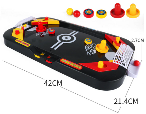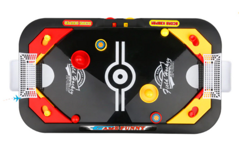 The Mini Interactive Table Hockey Game is perfect for family game night! It’s lightweight and easy to carry around so that you can play anywhere. The Mini Interactive Table Hockey Game is the perfect way to promote healthy competition in your home! Play against friends or family members in this fun tabletop hockey game that features two goals, two players, and a puck.