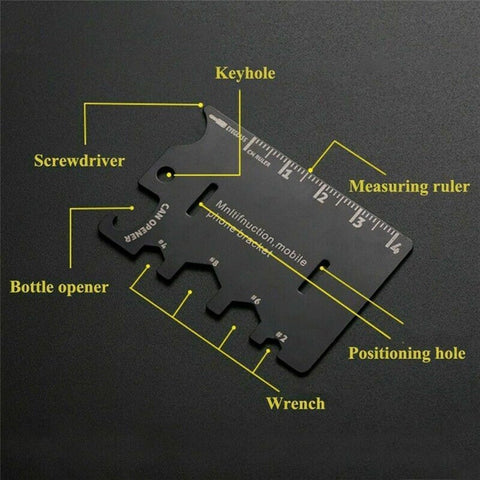 This is a multi-functional outdoor gadget, can be used as a cell phone bracket, bottle opener, hexagonal spanner, rope cutter, keychain, a variety of ways to use, is a good helper in field activities.
