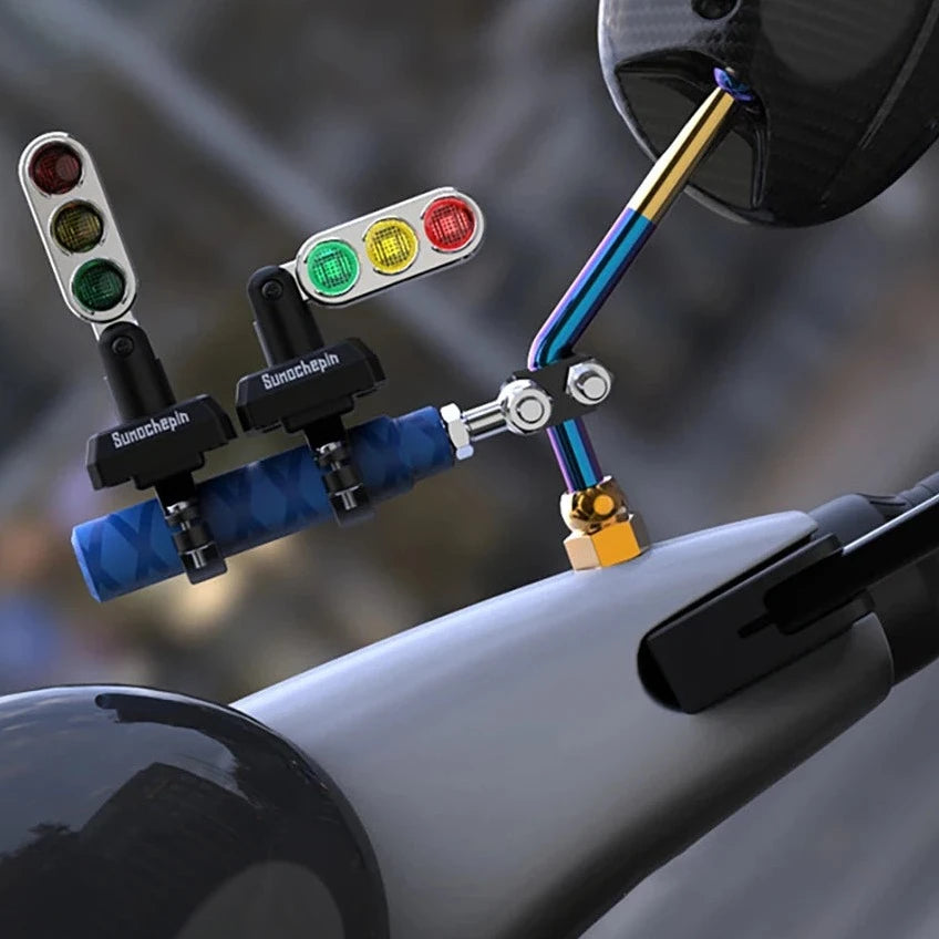 The Mini Traffic Lamp Style Motorcycle Handlebar Signal Light is a unique and stylish addition to any motorcycle. These handlebar signal lights are designed like mini traffic lamps, adding a fun and eye-catching element to your bike while also enhancing safety on the road. With bright LED lights, they provide excellent visibility to other drivers, making your intentions clear during turns or lane changes.