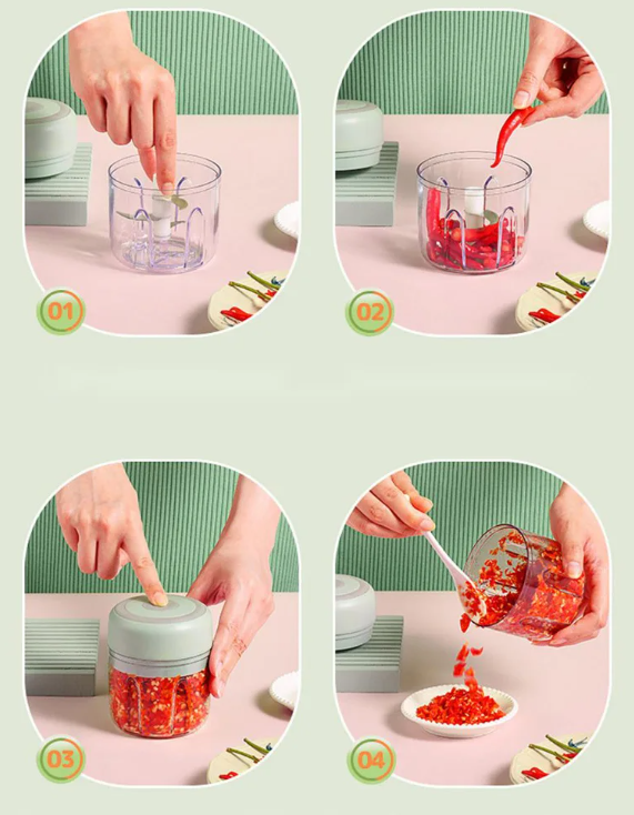 The electric crusher lets you say goodbye to manual pulling; you only need to press the button on the top to crush it automatically. Ideal kitchen tools for garlic, ginger, chili, peanuts, minced meat, pumpkin puree, etc. It is an indispensable tool for food research enthusiasts.