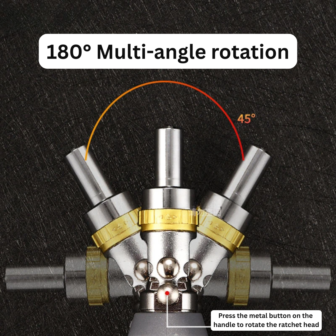 Adjustable ratchet head: Easily access tight or awkward angles.