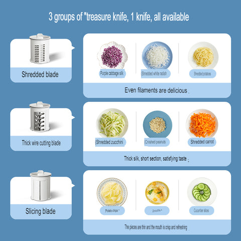 The Multi Chop Adjustable Professional Electric Grater is a versatile and efficient kitchen tool designed to make food preparation faster and easier. This electric grater features a powerful motor that can easily grate or shred different types of foods, including cheese, vegetables, nuts, and chocolate.