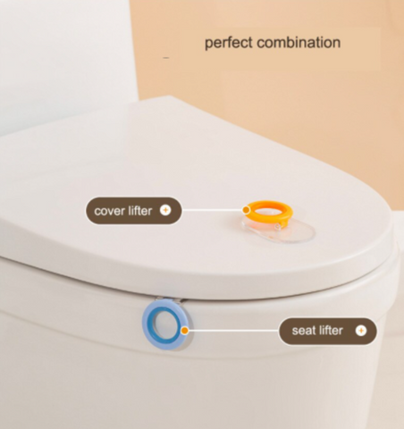 Place the toilet lifter on the bottom of the toilet seat, and lift by the handle.