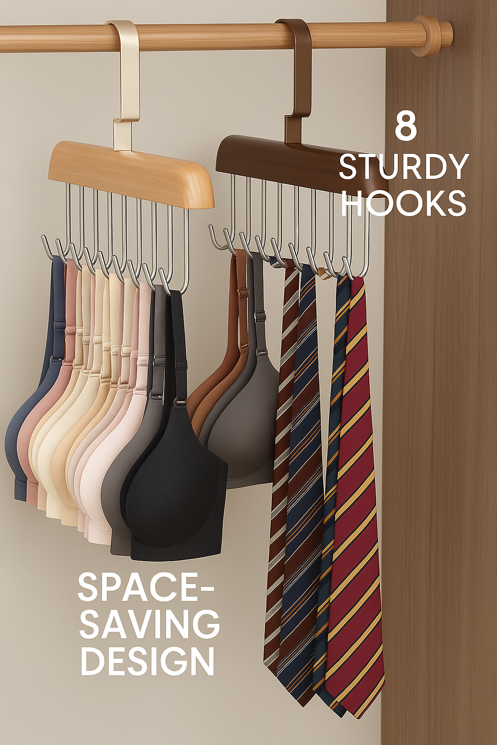 This Clothes Organizer Rack is an innovative storage solution designed to maximize your closet space while keeping your clothing organized and easily accessible. Crafted with solid wood and a sleek metallic finish, this multifunctional hook hanger not only adds aesthetic value to your room but also supports various types of garments.?
