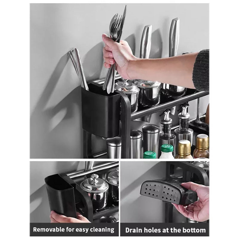 - Use it in your kitchen to help keep spices organized and accessible. The bottom of the design is reasonable, the items are not easy to fall, ventilate and breathe, and adhere to the breeding of bacteria.