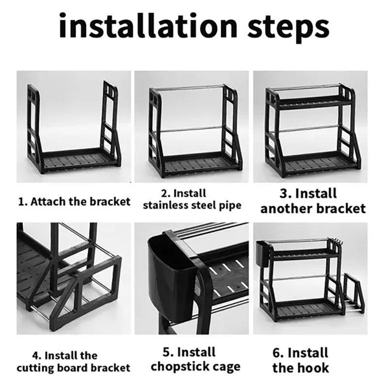 The double-layered kitchen dish rack meets the basic needs of the family. This hanging chopstick cage has a hollow drain design. The storage rack is made of Stainless steel+ABS, which is strong, durable, safe and healthy.