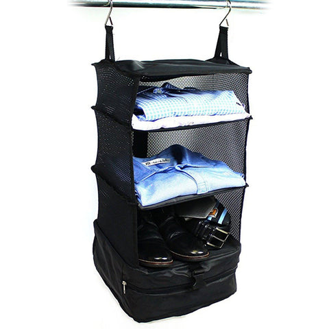 THE ULTIMATE TRAVEL ORGANIZER FOR PEOPLE ON THE GO. Whether traveling for work or fun, time is important. Don’t waste time unpacking, just hang in a closet and instantly access your clothes or outfits