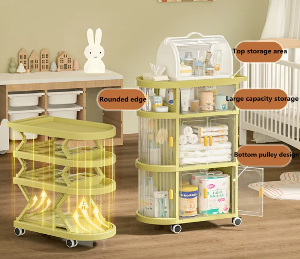 This foldable trolley is a versatile and space-saving solution for organizing and transporting various items. This trolley features multiple layers, providing ample space to store household goods, office supplies, or tools. Its foldable design allows for easy storage when not in use, making it ideal for small spaces. Equipped with smooth-rolling wheels, it offers effortless mobility, making it perfect for use in the home, office, or even in commercial settings like salons and workshops.??