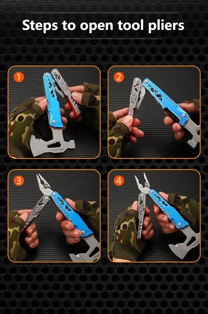 Embrace the ultimate in versatility with our Multi-Use Axe Hammer Pliers Outdoor Multi-Tool Gadget, the indispensable companion for any outdoor enthusiast or handyman. Crafted from high-grade, durable stainless steel, this multi-tool is designed to withstand the toughest of environments, ensuring reliability when you need it most.