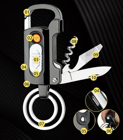 - Multifunctional: Keychain/Red wine opener/Knife/Flashlight Slotted Screwdriver.