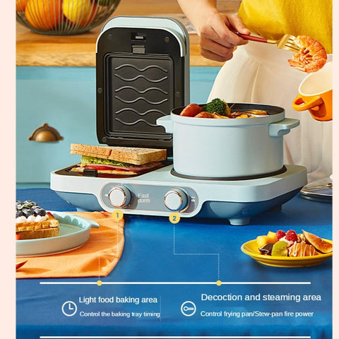 ? The Multifunctional Sandwich Toaster Breakfast Maker is the perfect kitchen appliance for any household. It can fry, steam, and stew sandwiches in addition to making breakfast.