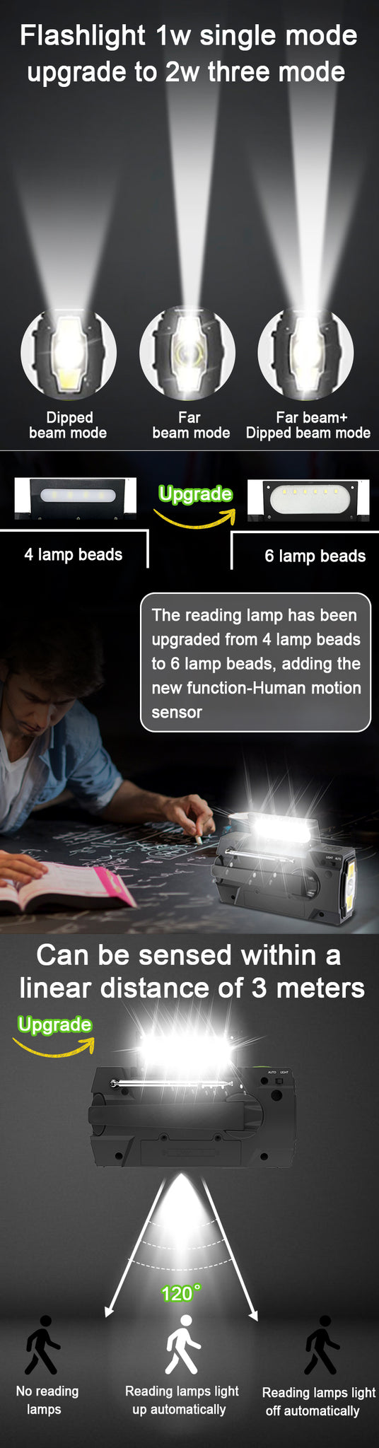 If you are an outdoor enthusiast or need to walk in places without lights, the flashlight radio with 3 modes flashlight is a great alternative, which farthest lighting range exceeds10m, farther than most other solar emergency radios. Also, a reading lamp with a Motion sensor will greatly help you get up in the mid-night to avoid waking your family. Add to cart, you will never regret that you purchase this crank flashlight radio!