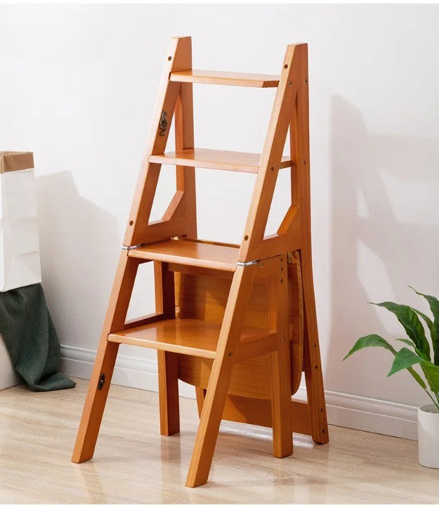 This transformable chair is a versatile piece of furniture, ingeniously designed to serve dual purposes. Crafted from durable wood, it easily transforms from a comfortable chair into a sturdy ladder, making it a space-saving and practical choice for any home. Ideal for those with limited space, this chair-ladder combo is perfect for reaching high shelves or providing an extra seat when needed, blending functionality with a classic, elegant design.? ??