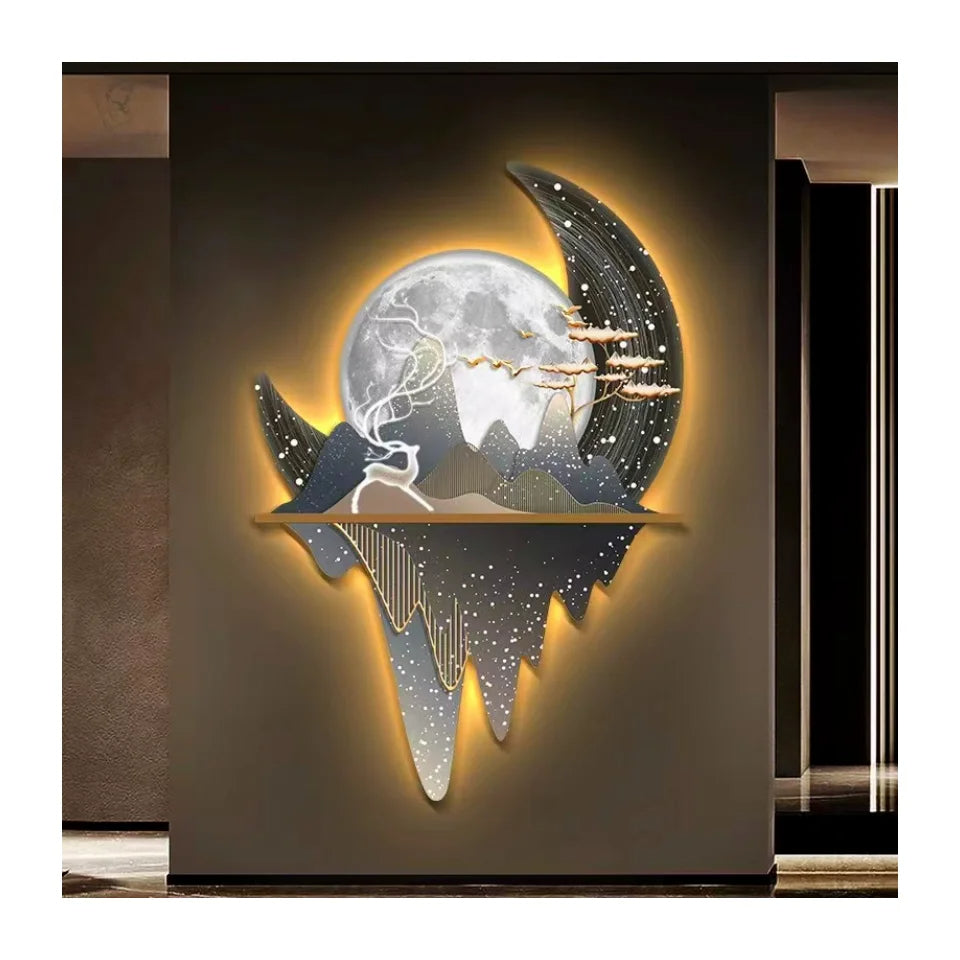 The true allure of this artwork lies in its integrated LED features. Tiny, strategically placed lights bring the scene to life, mimicking the gentle luminescence of the moon and stars, casting a soft glow that enhances the overall ambiance of any room. With the flip of a switch, witness the canvas transform as it illuminates, becoming the focal point of your space and setting a tranquil, mystical mood
