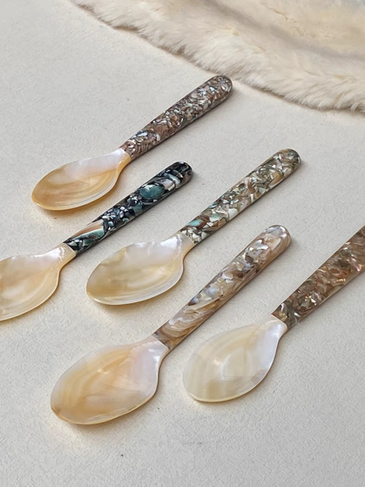 The Natural Pearl Shell Moonlight Snail Spoon is an exquisite kitchen accessory combining elegance and functionality. Crafted with beauty in mind, this spoon showcases a unique snail design that adds a touch of sophistication to your dining experience. Perfect for serving desserts or stirring delicate sauces, its lustrous surface reflects light beautifully, enhancing any table setting.?