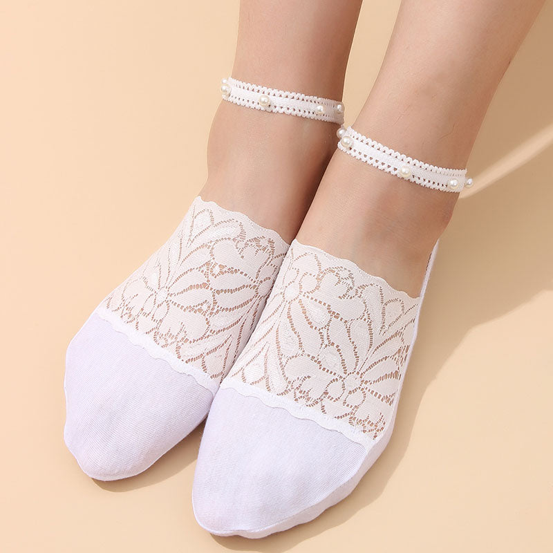 1x Pearl Lace Anti-slip Comfy Invisible Socks
