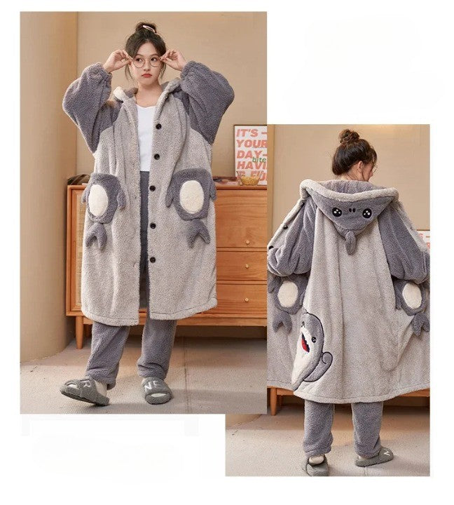 ?The Plush Dinosaur Hooded Pajama Suit is a delightful blend of comfort and fun, perfect for those looking to add a playful touch to their loungewear. Made from ultra-soft, high-quality plush fabric, this pajama suit envelops you in warmth and coziness, ensuring that you’ll feel snug whether you’re sleeping or relaxing at home.?