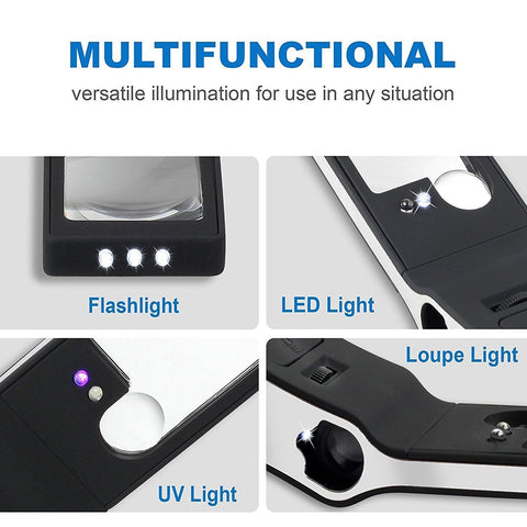 - 4 different lighting modes: flashlight, magnifier light, loupe light, and UV light.