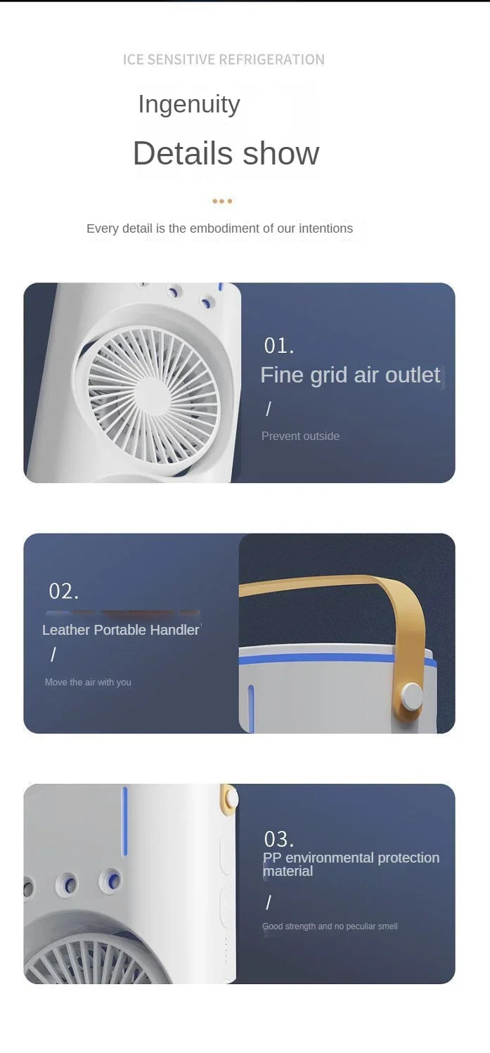 The Portable Double Fan Cooling Spray Air Conditioning unit is your ultimate solution for staying cool during those hot summer days. This compact device features two powerful fans that circulate air effectively, while its integrated spray function provides a refreshing mist to enhance the cooling experience. Designed with portability in mind, it is perfect for use at home, in the office, or on outdoor adventures. The sleek design and easy-to-use interface make this portable air conditioner a must-have gadget for anyone seeking relief from the heat.
